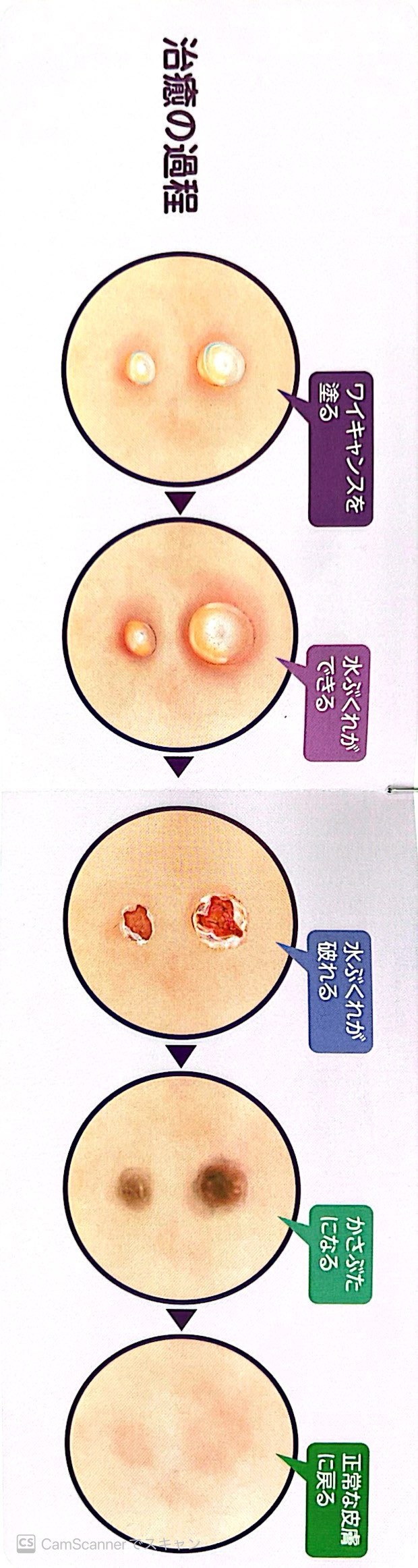 最近、新たに「ワイキャンス」という薬が使えるようになりました。院内で塗布して行くタイプのお薬で、塗った部分が水ぶくれになりながら勝手に取れていくという画期的なお薬です。